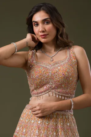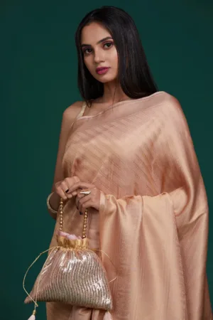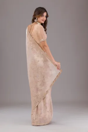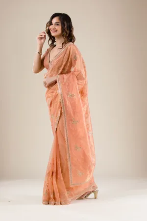 Light Peach Sequins Tissue Saree
