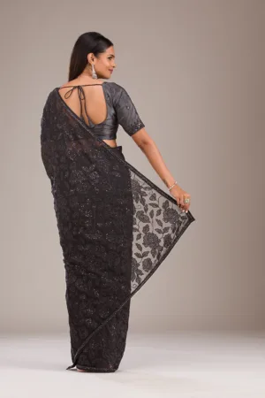 Black Sequins Georgette Saree