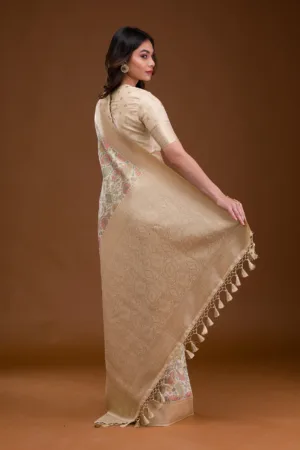 Beige Printed Tissue Saree