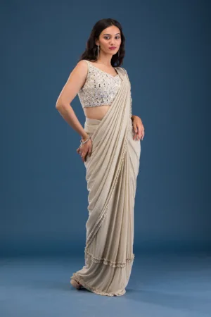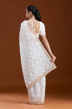 Off White Sequins Tissue Saree