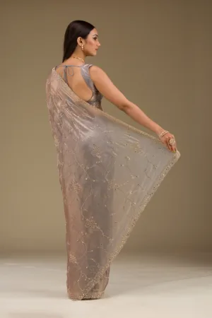 Light Grey Sequins Tissue Saree