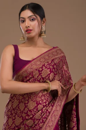 Maroon Zariwork Georgette Saree