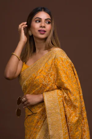 Mustard Zari Work Raw Silk Saree