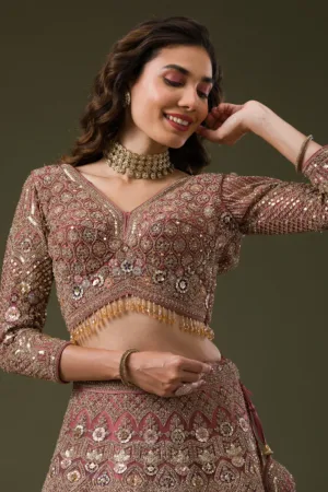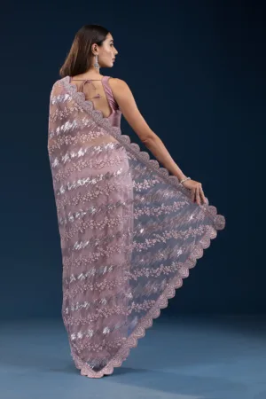 Onion Pink Sequins Net Saree