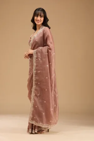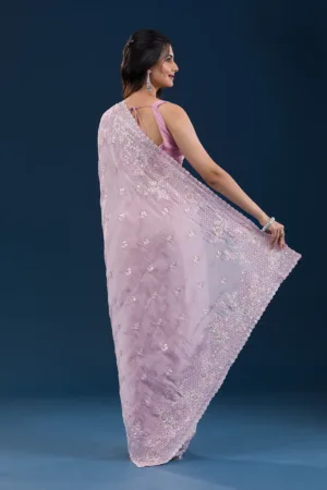 Onion Pink Sequins Tissue Saree