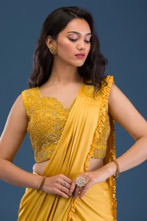 Mustard Sequins Lycra Readymade Saree
