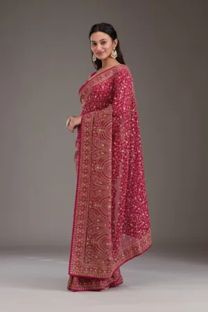 Rani Pink Zariwork Georgette Saree