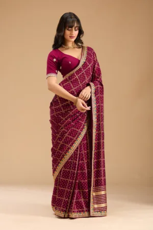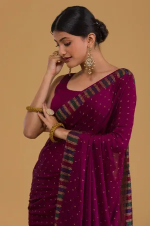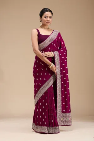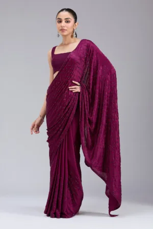 Wine Swarovski Semi Crepe Designer Saree