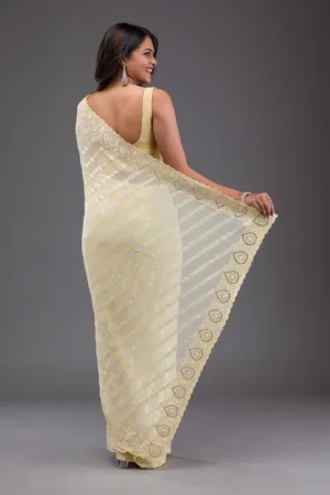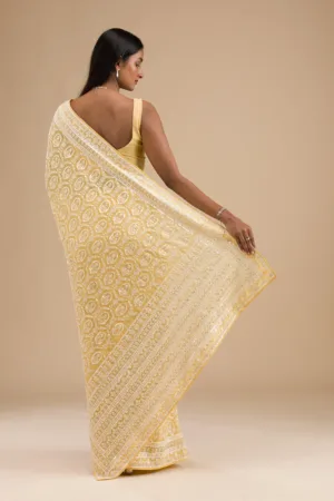 Yellow Threadwork Georgette Saree
