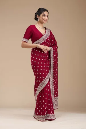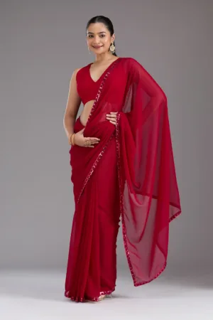 Maroon Sequins Georgette Saree