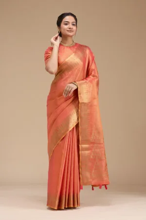 Peach Zariwork Banarasi Saree