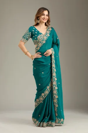 Teal Green Cording Georgette Saree