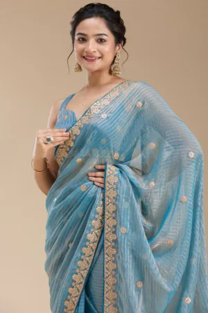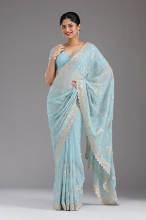 Sky Blue Zariwork (Gold) Georgette Saree