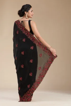 Black Kashmiri Chiffon Saree
