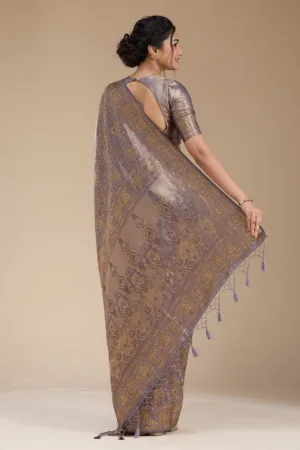 Brown Gold Zariwork Tissue Saree