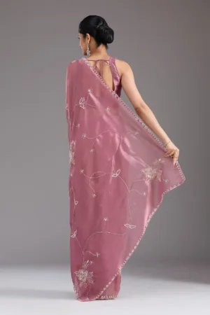 Onion Pink Aariwork Tissue Saree
