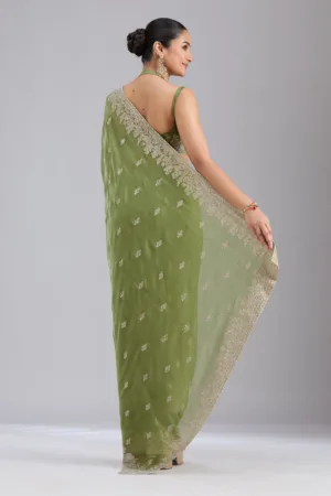 Mehandi Green Threadwork Tissue Saree