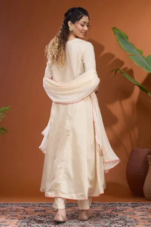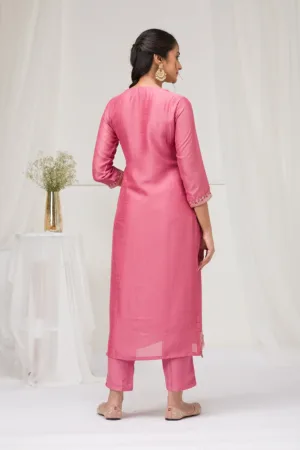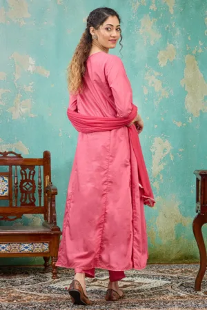 Onion Pink Threadwork Raw Silk Readymade Salwar Suit