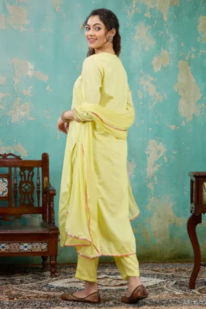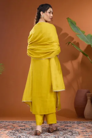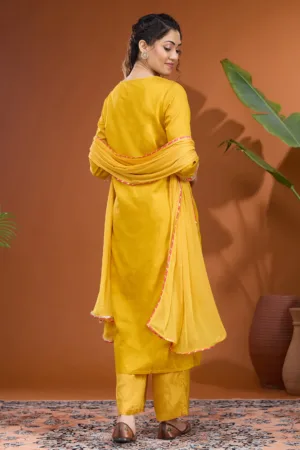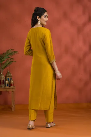 Mustard Threadwork Raw Silk Readymade Salwar Suit
