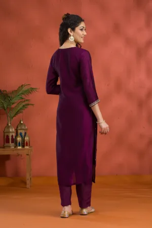 Purple Threadwork Raw Silk Readymade Salwar Suit