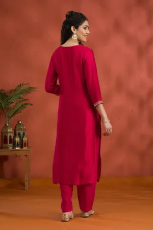 Rani Pink Threadwork Raw Silk Readymade Salwar Suit