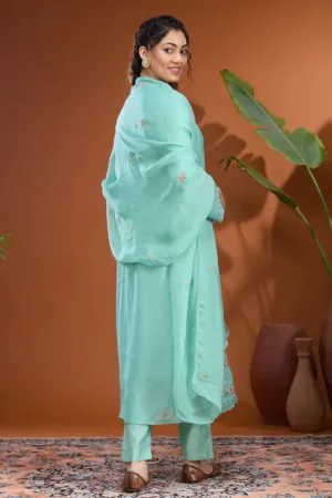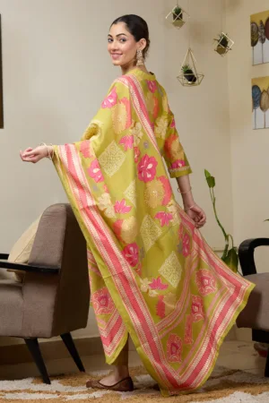 Pista Green Cording Soft Raw Silk Readymade Salwar Suit