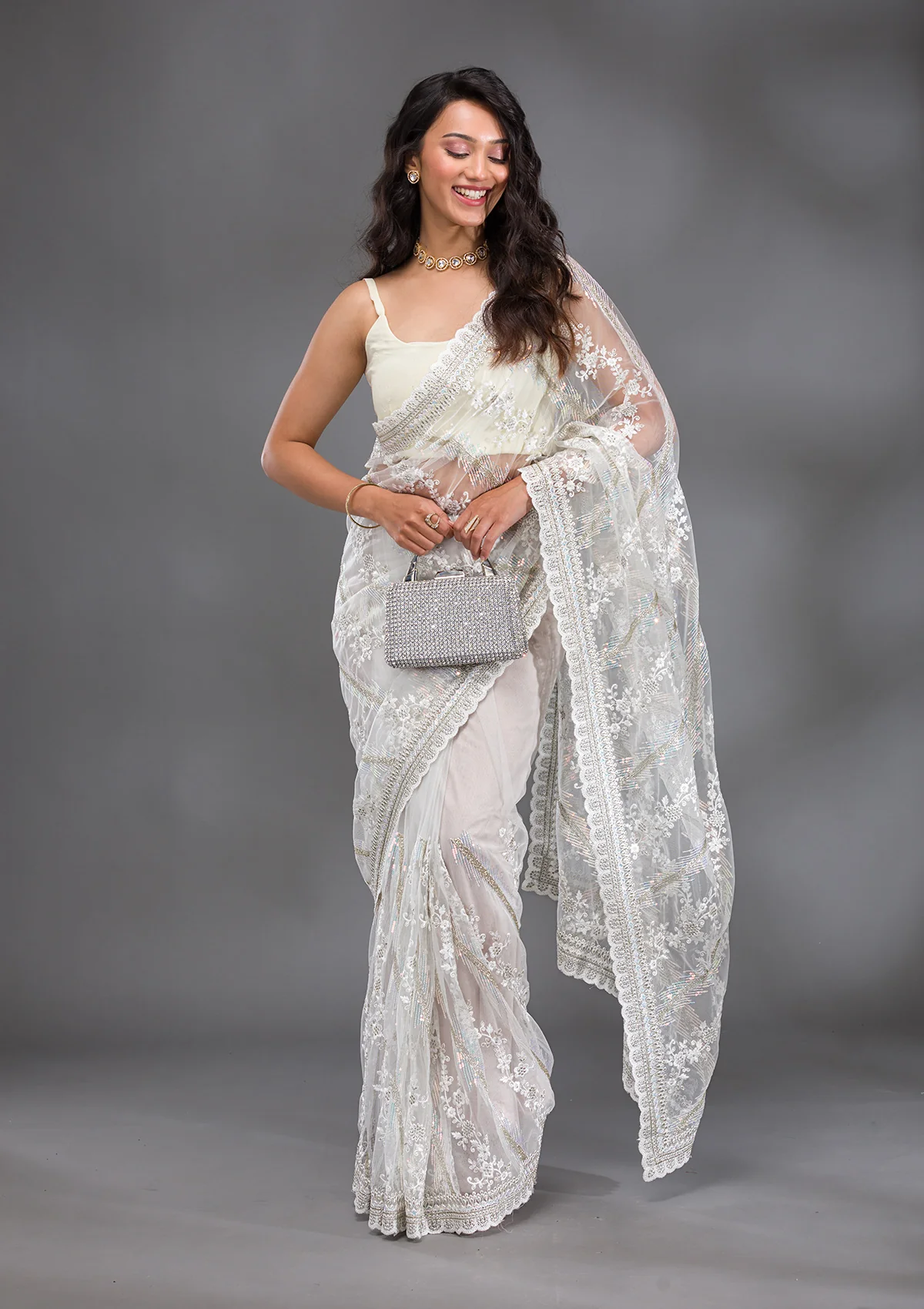 – Off White Saree in Net fabric