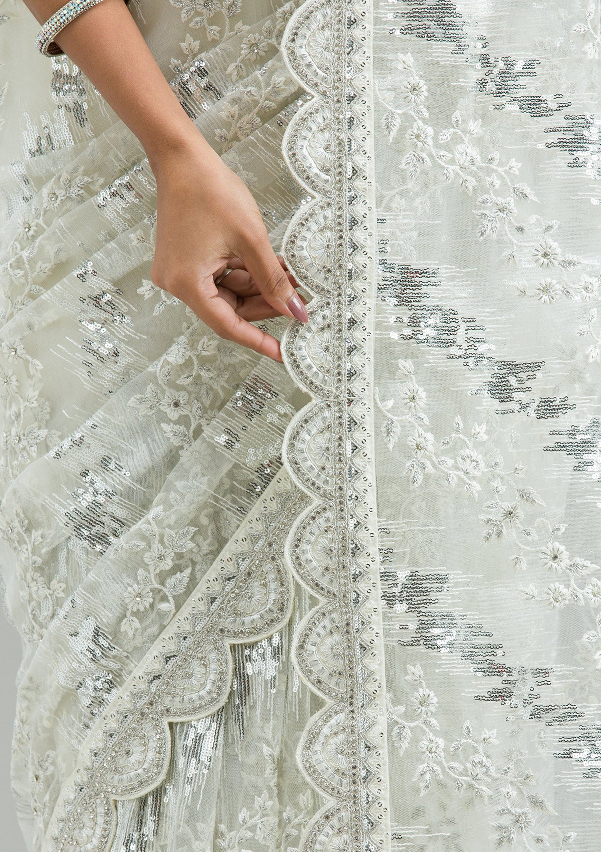 – Off White Saree in Net fabric