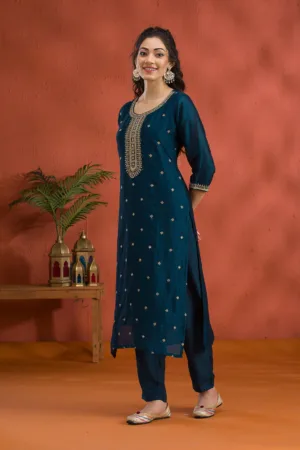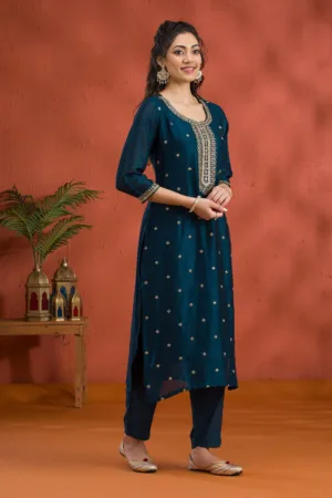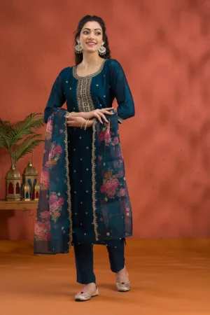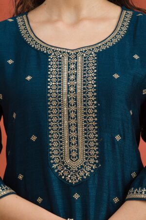 Dive into the luxurious embrace of Mimosa’s Blue Raw Silk Salwar Suit, where classic meets modern in a spectacular fusion of style! This readymade ensemble sparkles with rich gold Zari embroidery, offering a majestic blend of tradition and contemporary flair. Perfect for any event where making a memorable impression is a must, its soft silk fabric dances gracefully with every move you make, ensuring you look as fabulous as you feel.