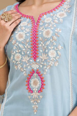 Unleash your vibrant side with Mimosa’s captivating blue crepe Salwar Suit, a symphony of radiant threadwork embroidery that dances across soft, luxurious fabric. This ready-to-wear ensemble, tailored for the spirited and the stylish, wraps you in comfort with a flourish of playful elegance. Perfect for making a spirited statement wherever life takes you, Mimosa embodies timeless beauty and effortless grace in every stitch.