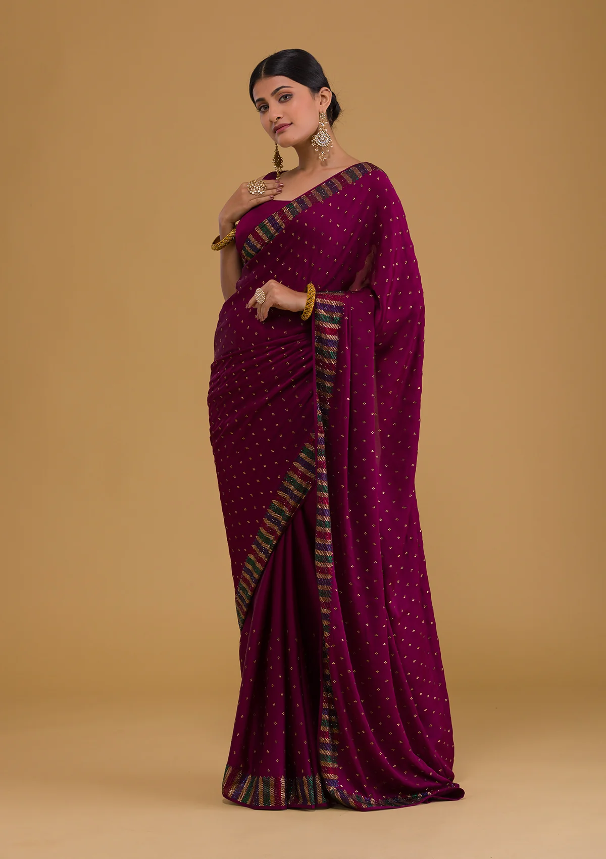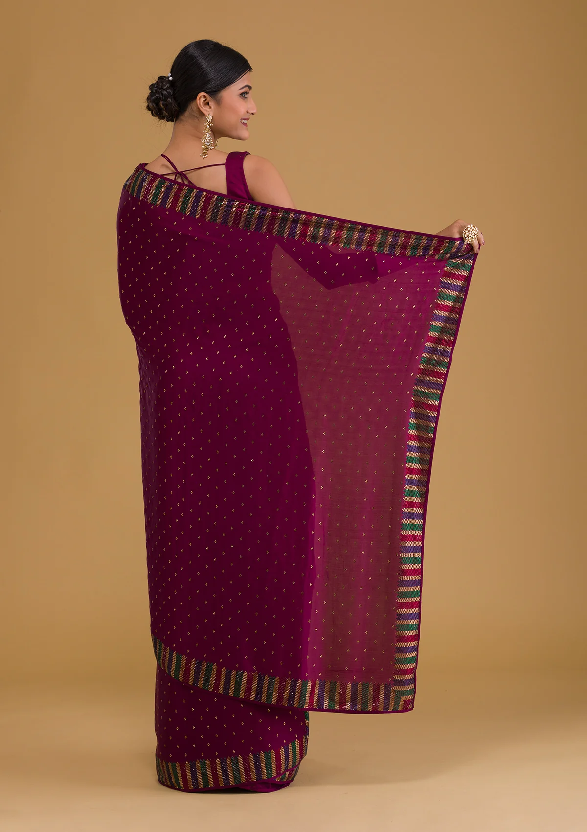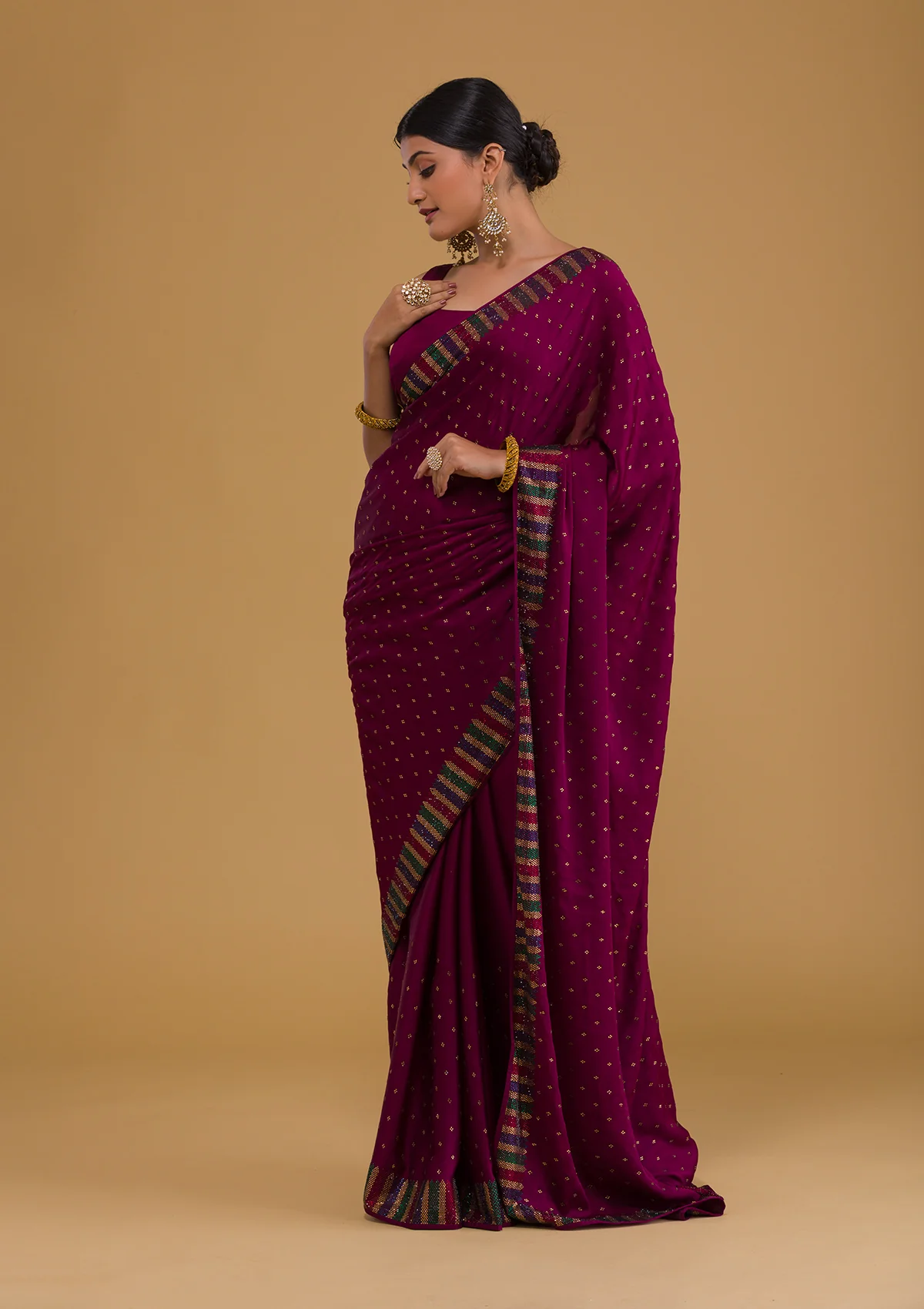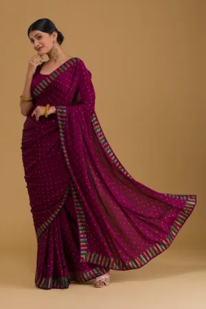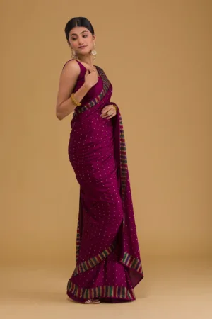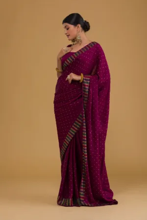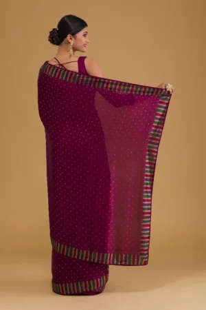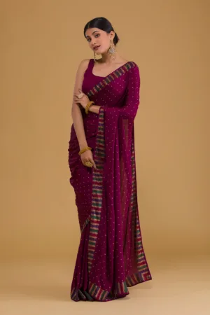 ‘- Wine Saree in Semi Crepe fabric