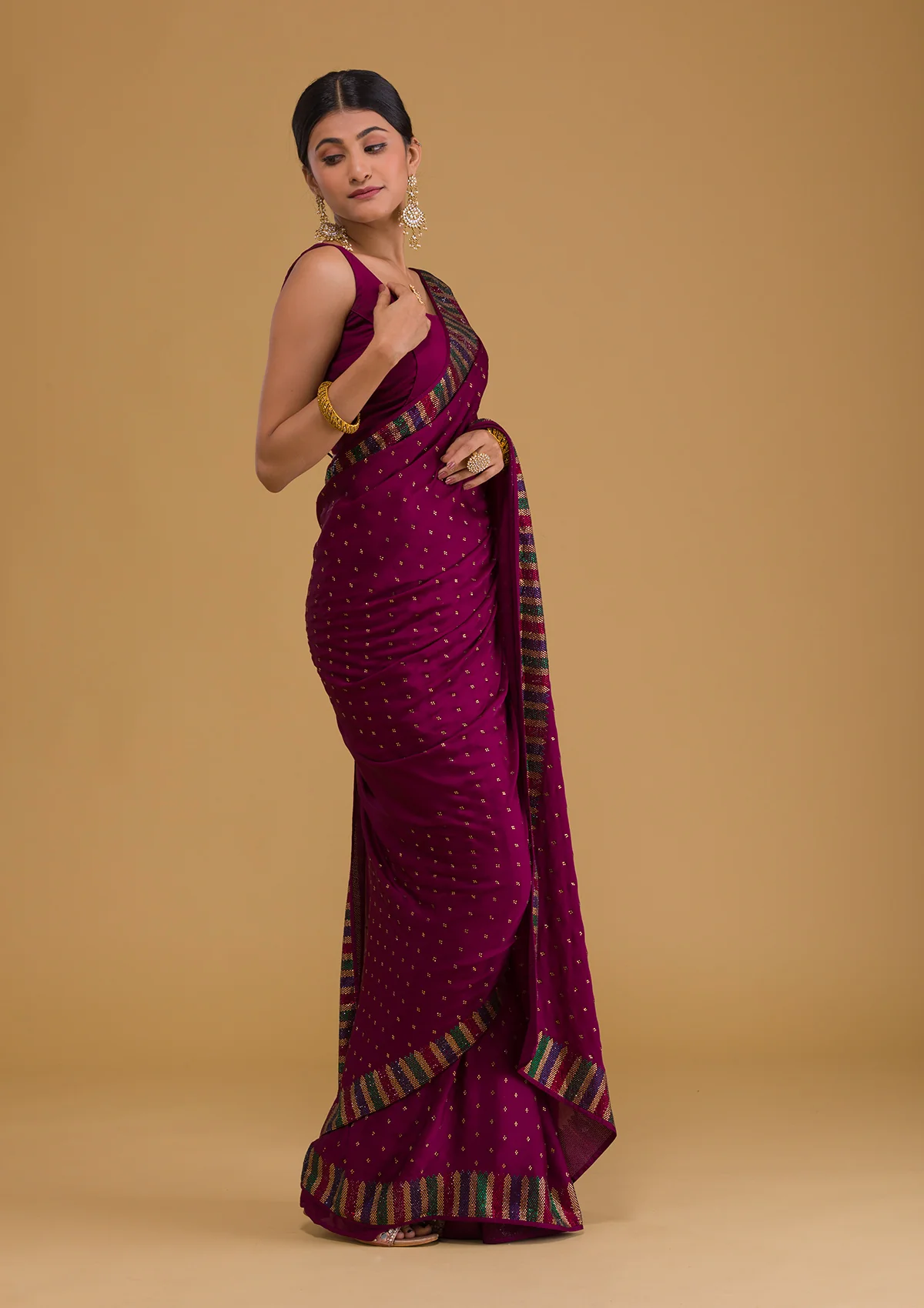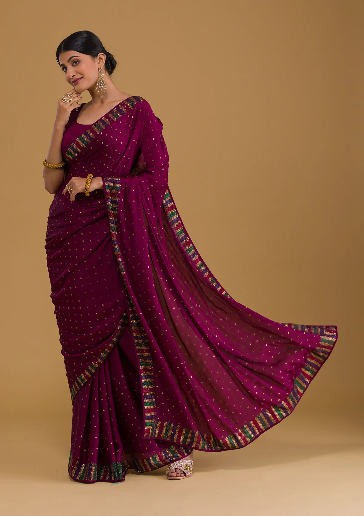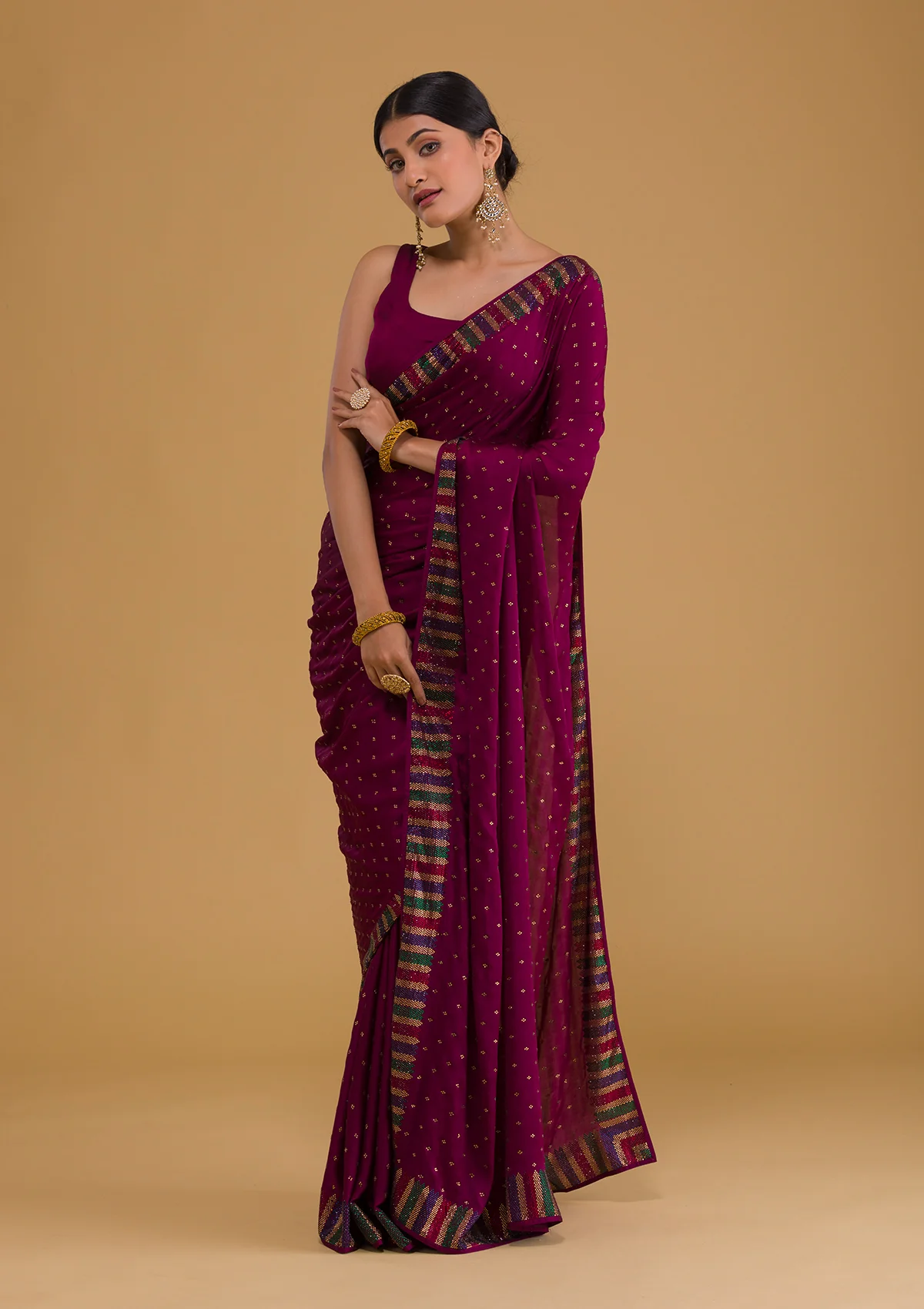 ‘- Wine Saree in Semi Crepe fabric