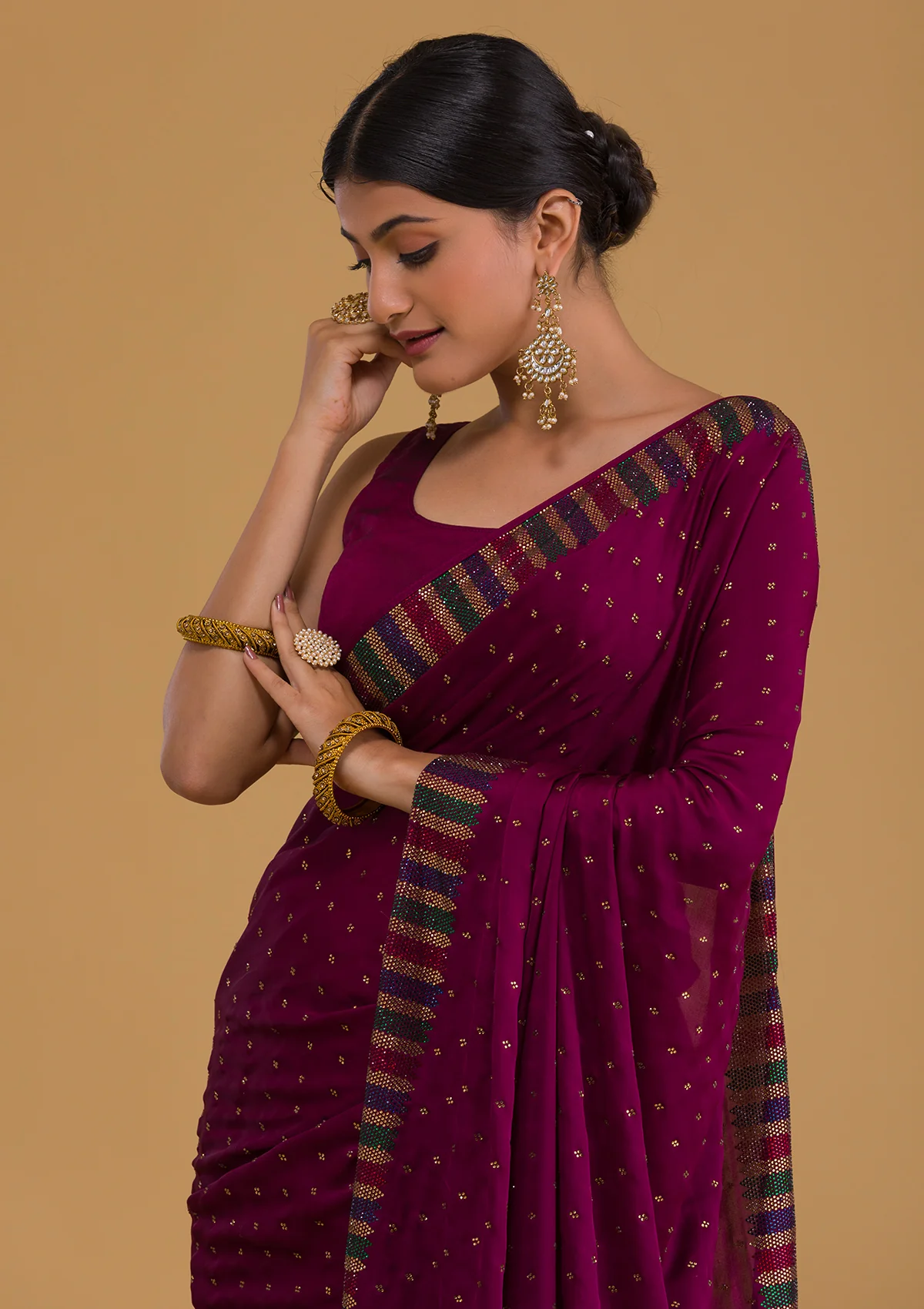 – Embellished with Swarovski stone work embroidery